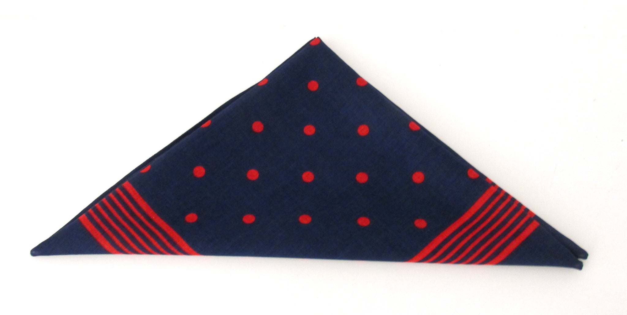 This versatile navy with red dot bandana is suitable worn as a neckerchief or used as a regular hanky as well as a bandana.