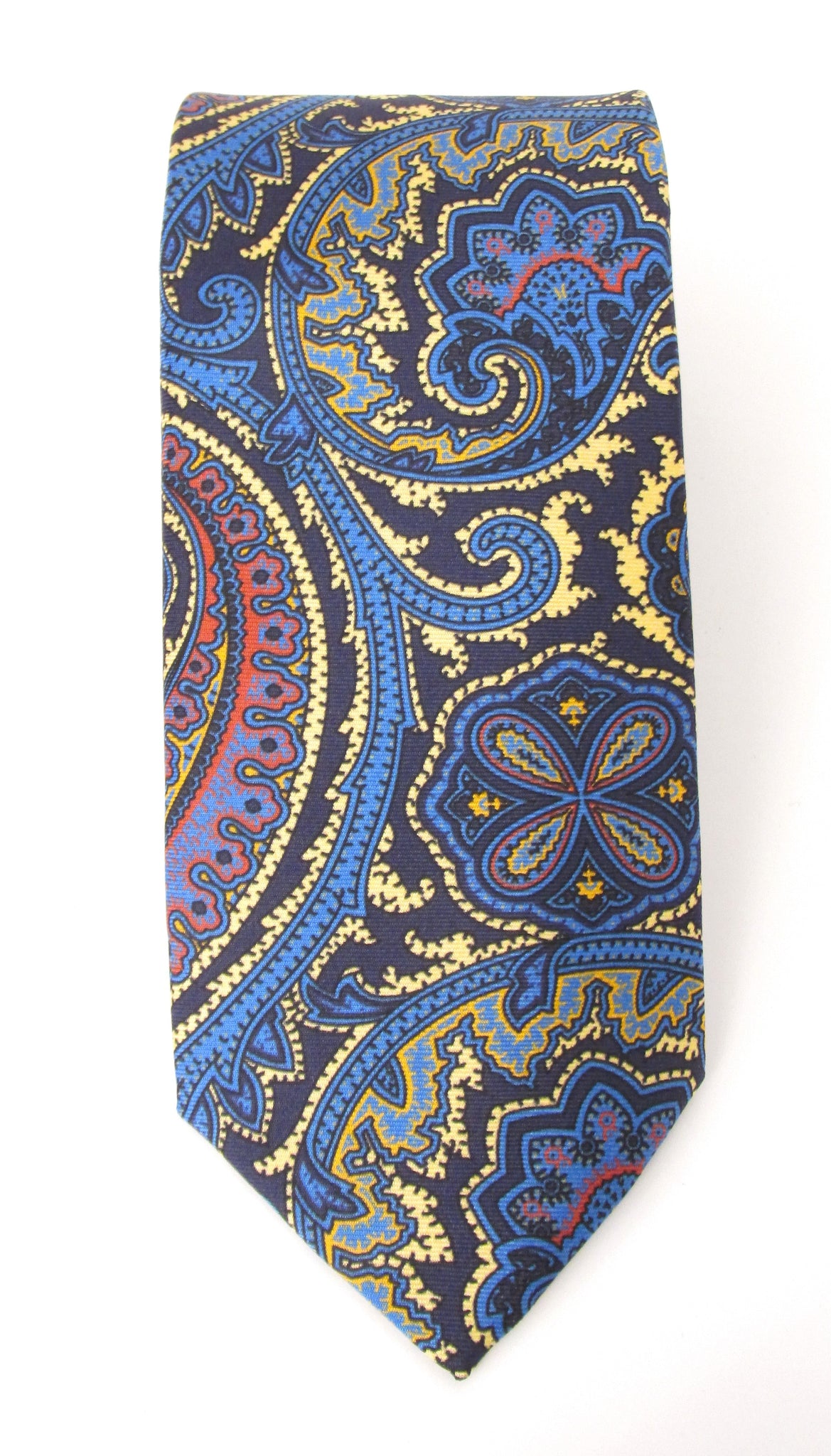Navy Giant Paisley Printed English Silk Tie by Van Buck
