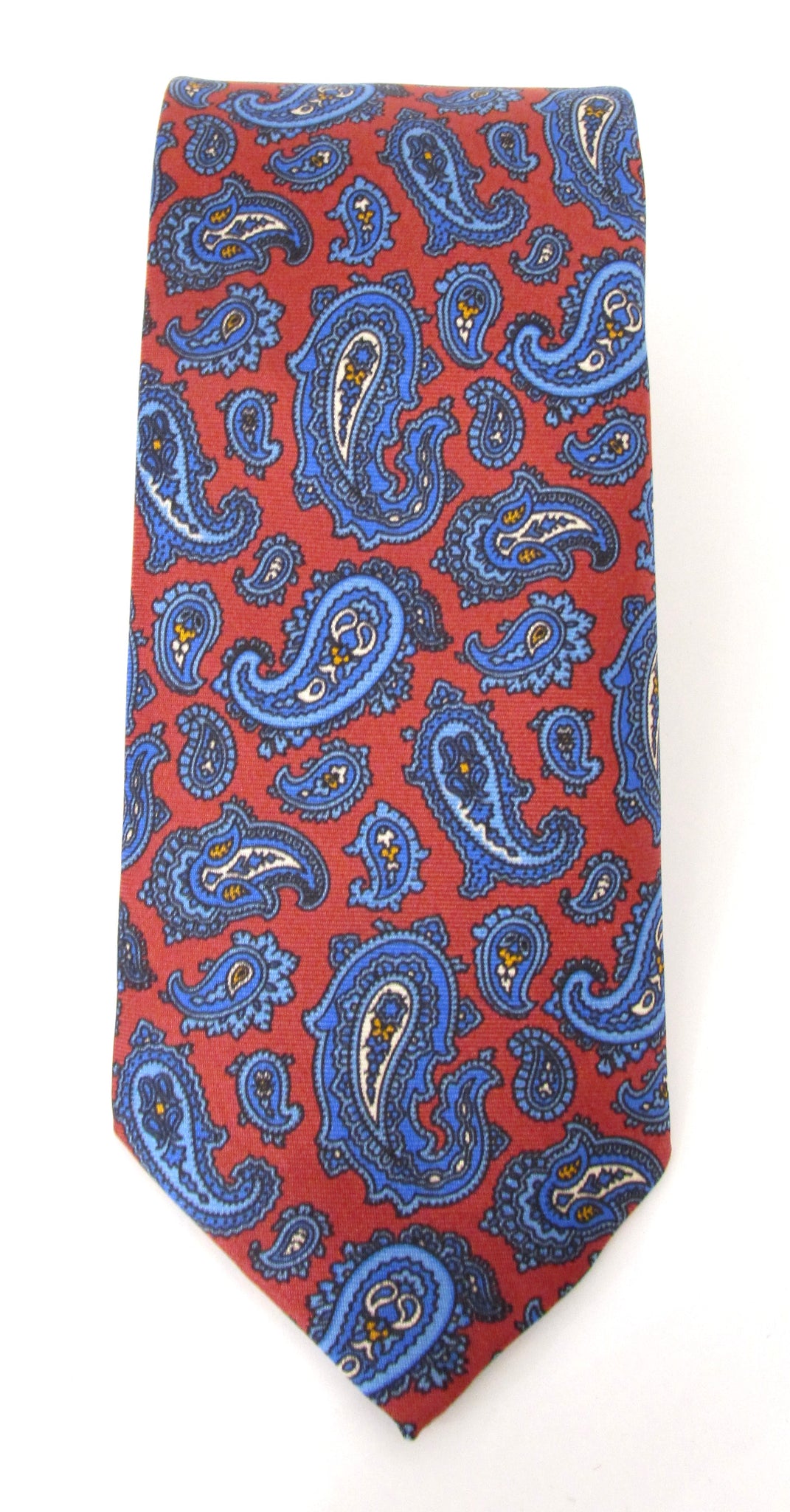 Red Traditional Paisley Printed English Silk Tie by Van Buck