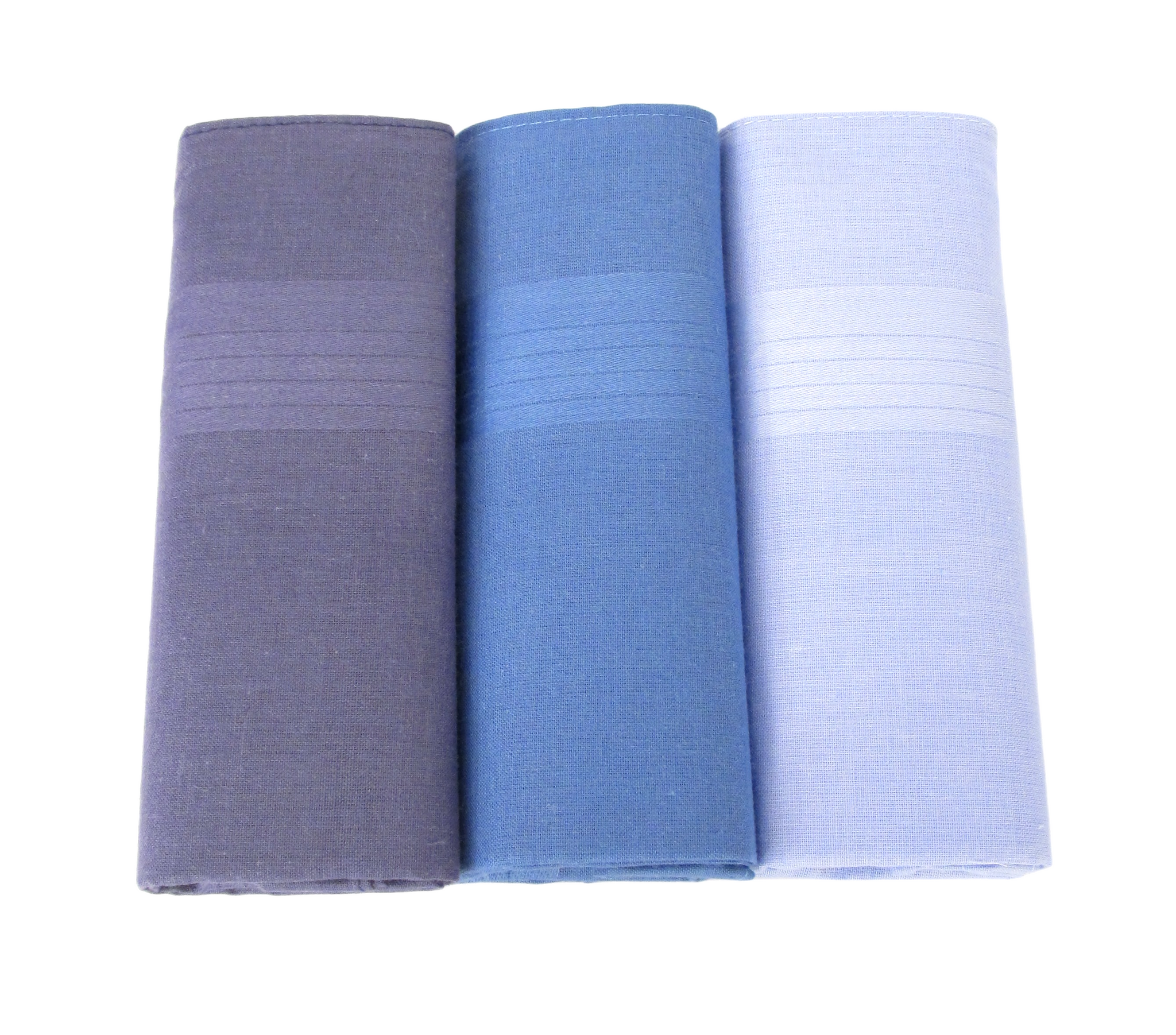Three shades of blue Egyptian Cotton handkerchiefs presented in a stylish gif box. Ideal for Christmas or Birthday presents.