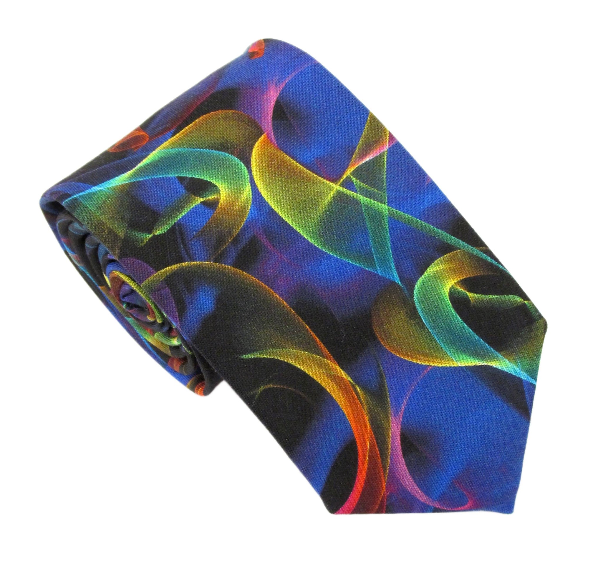 This bold party tie features a distinctive multicoloured laser pattern contrasted with its dark ground, making for one striking piece of neckwear. This tie is perfect for adding some personality and fun to your outfit. The quality of fabric we use for our ties is outstanding making them stand out as a quality piece of gentleman's neckwear. Order yours now to add some unique character and style to your attire.