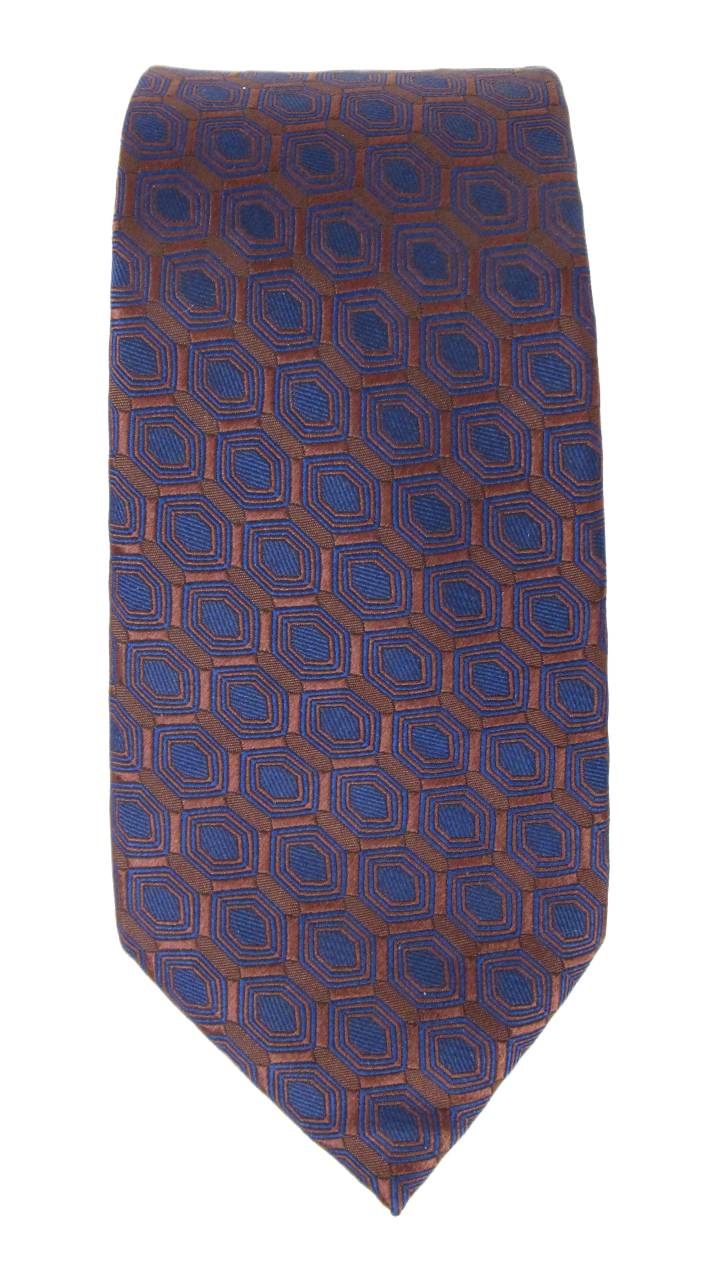 Navy Brown Hexagons London Silk Tie by Van Buck
