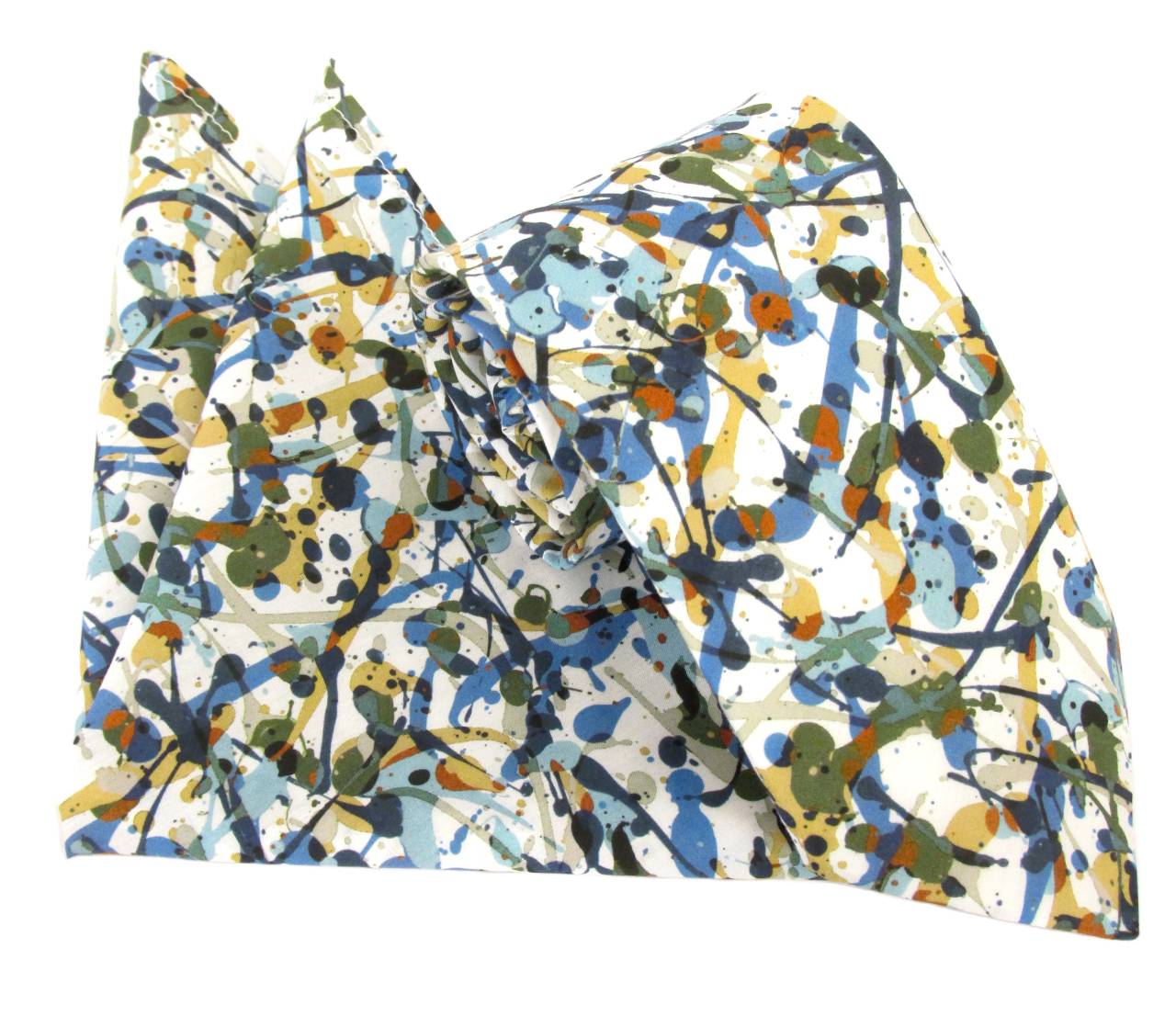A Club Paint Cotton Tie and pocket square set Made with Liberty Fabric. An absolutely stunning Van Buck cotton range using exclusive Liberty Tana Lawn® printed fabric. This tie and matching hank uses the art inspired Club Paint Liberty print, a fun and expressive design, featuring an energetic paint splattering in a diverse but complimentary range of colours, culminating in one uniquely striking accessory set. This tie & pocket square set is sure to compliment your attire and give you a unique sense of style at any event, wedding, or party you attend. We also have matching bow ties and self-tie bow ties available. This collection includes a range of different Liberty patterns which are all perfect for wedding ties, prom ties, events or even a day in the office. Order yours now and be sure to stand out with your dapper style!