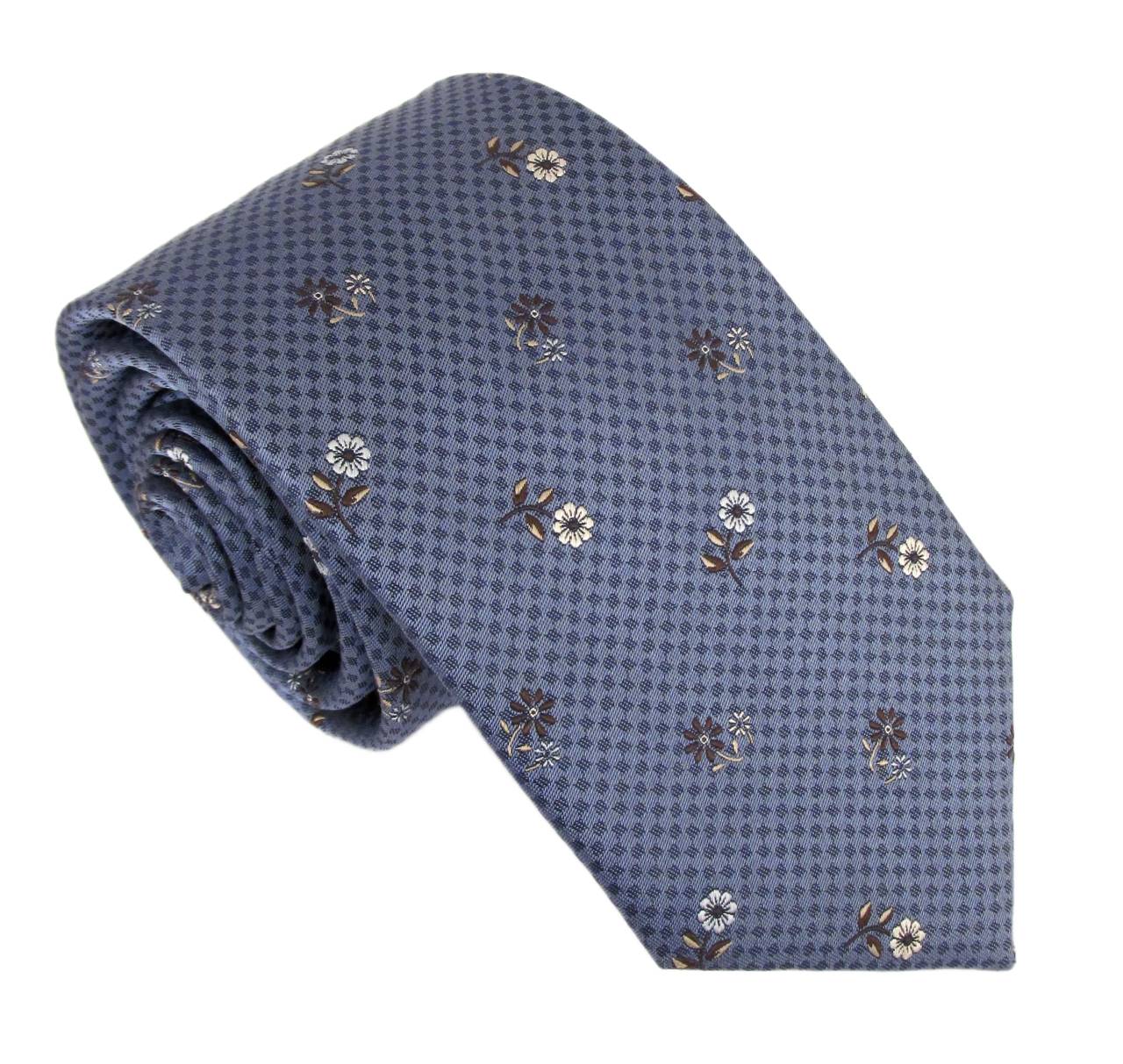 Blue Neat Chequered Flower Red Label Silk Tie by Van Buck