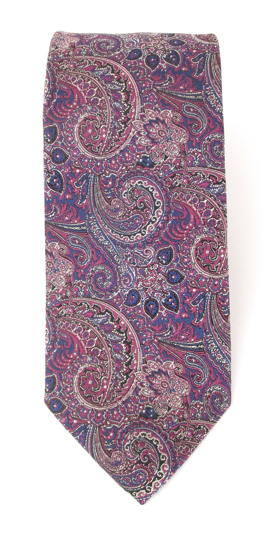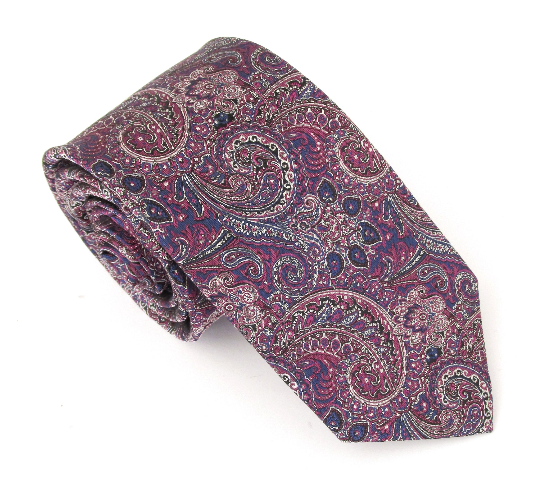 A cerise and navy blue woven silk tie, featuring an incredibly detailed and complex paisley pattern. Our Van Buck London Silk Tie Collection consists of clean bright English designs and colours, perfect for weddings, a day at the office or a day at the races. The quality of fabric we use for our ties is outstanding, making them a distinctive quality piece of gentleman's neckwear.