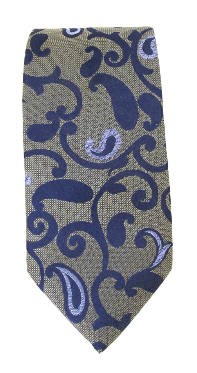 Green Navy Paisley Vine Textured Red Label Silk Tie by Van Buck