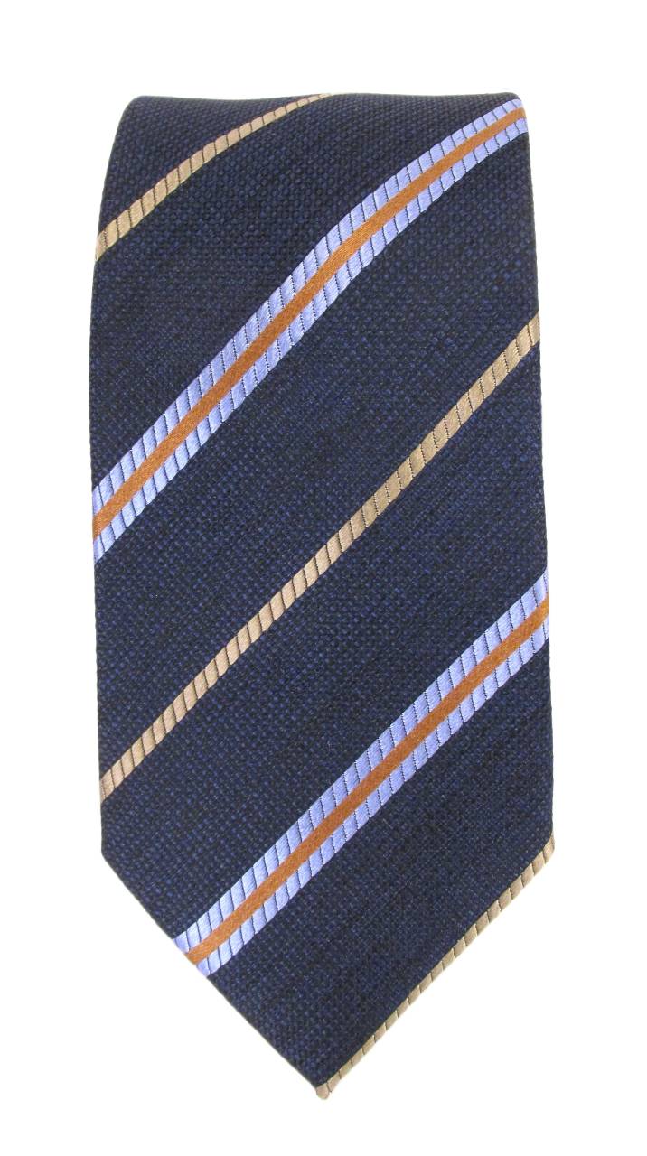 Navy Blue & Brown Multi Stripe Red Label Silk Tie by Van Buck