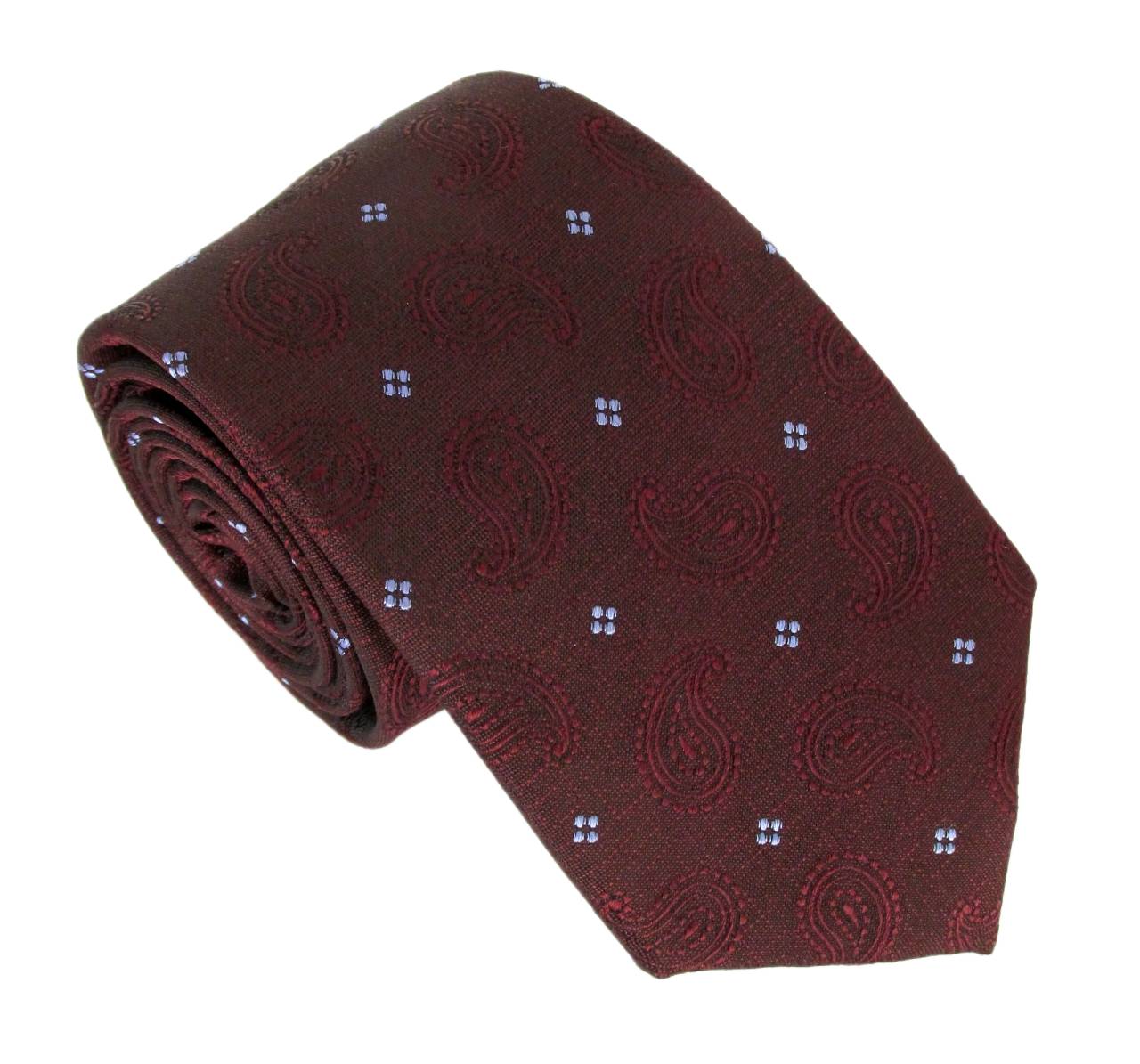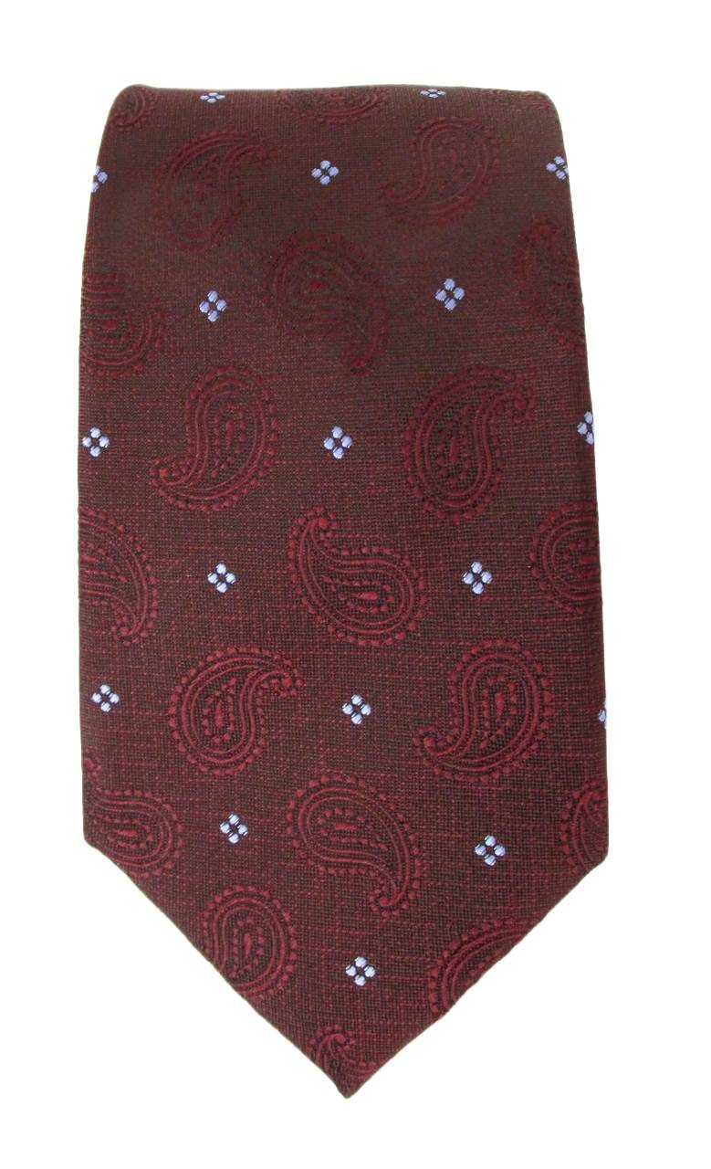 Wine Textured Self Pattern Paisley with Floral Motif London Silk Tie by Van Buck
