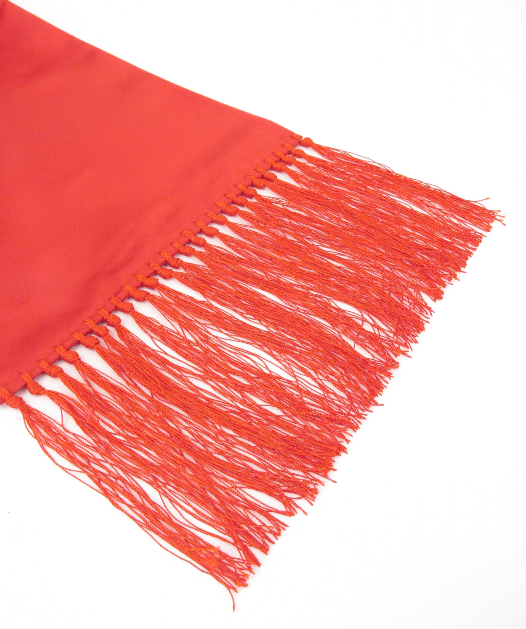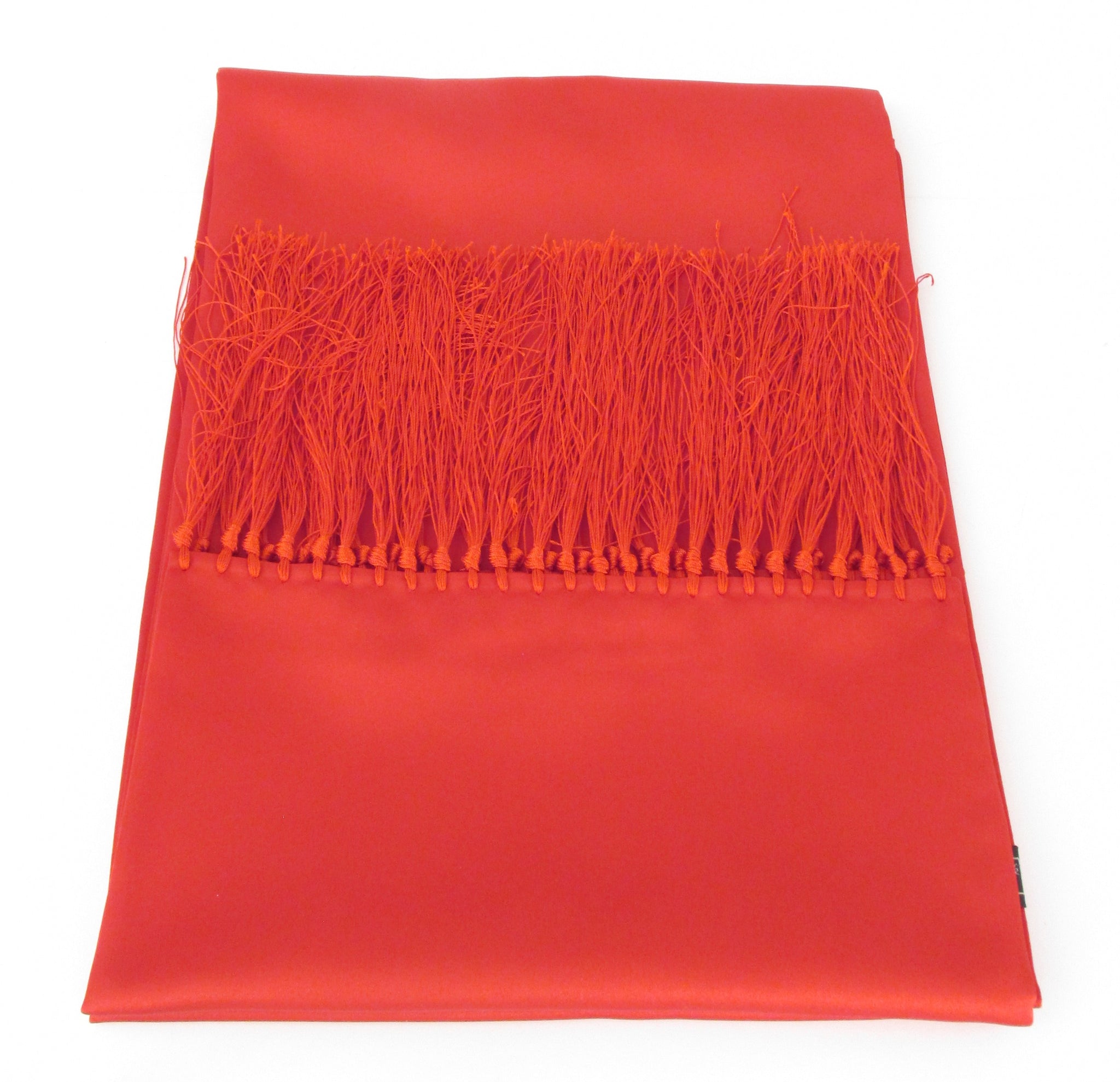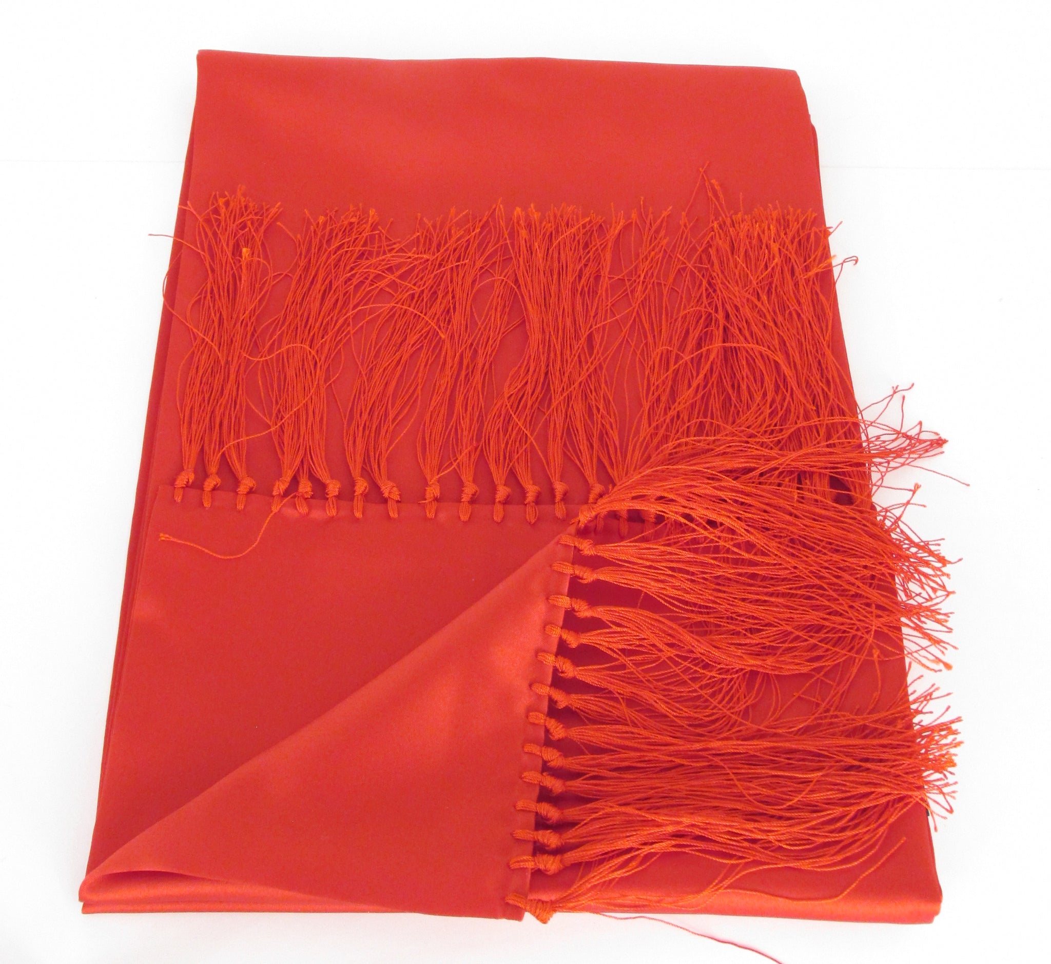 A red dress scarf with tassels. This is a classic, timeless piece and will have you standing out for all the right reasons in this red colourway.